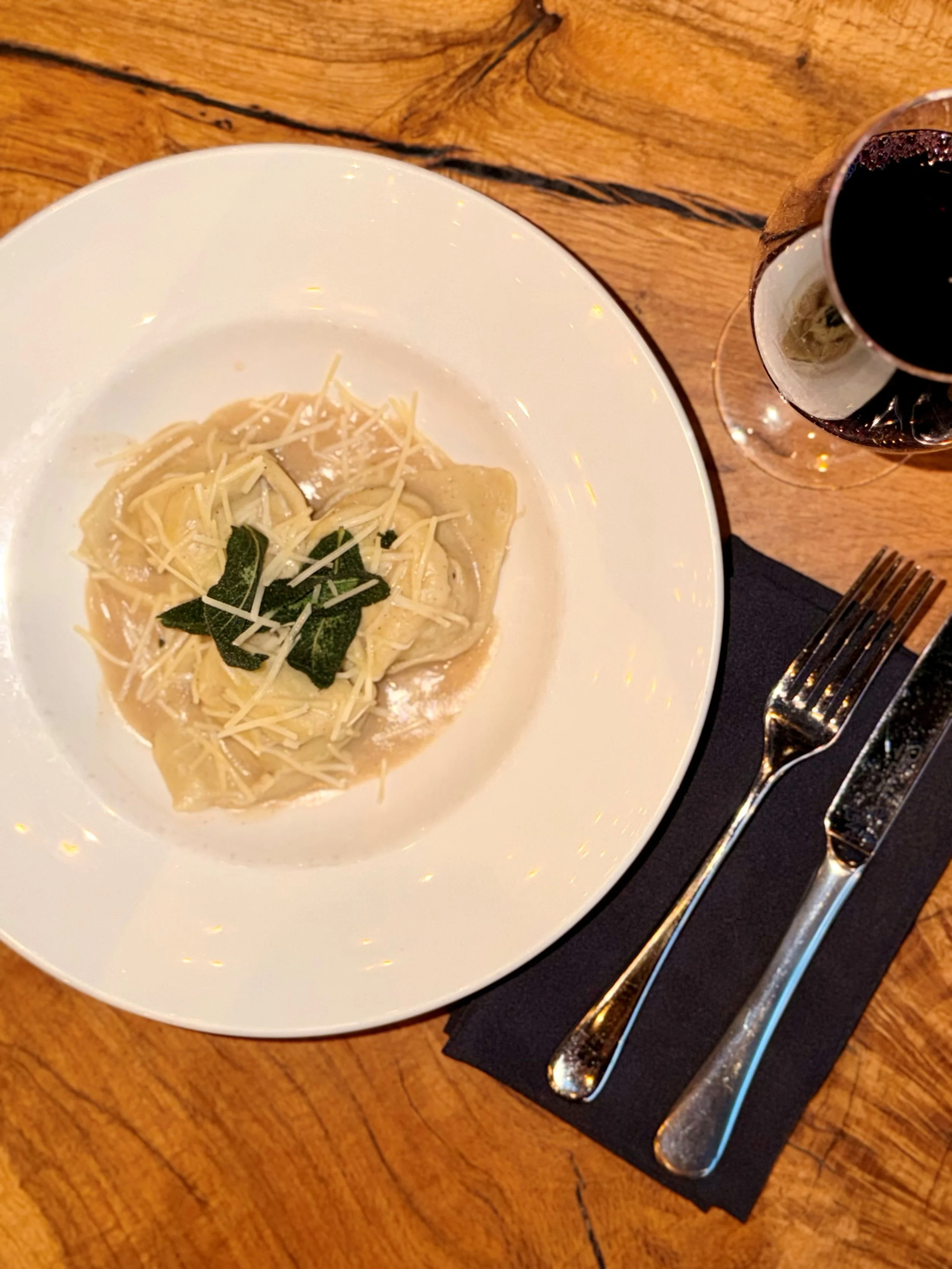 Dine In |Chicken and prosciutto tortellini, sage butter sauce, shaved parmesan, fried sage